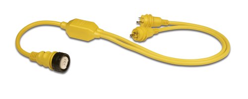 SEE Marinco 167RYN2 Marine Electrical Shore Power "Y" Adapter (Double 30-Amp 125-Volt Locking Male to 50-Amp 125/250-Volt Locking Female with Sealing Collar System, Yellow) at Amazon.com Now