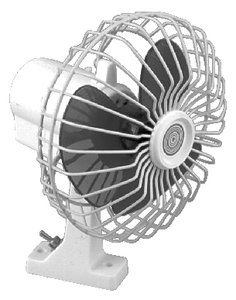 SeaChoice 6" Oscillating 12V Fan. On - the - water heat relief! On hot, muggy days when the wind won't blow, this Oscillating fan gives you a break from sweaty weather! Has a back-and-forth, 90 degree oscillating motion. Durable plastic base has a toggle switch control for easy on / off, too. Fan guard has a rust-proof white vinyl coating to stay lookin' good for years. Measures 7" in diameter, 6 1/2" deep and 9 1/2" tall. Create your own breeze! Get this Fan now! SeaChoice 6" Oscillating 12V Fan