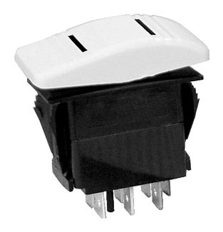 Seachoice Illuminated Contura Rocker Switch. Sealed front panel components gives these switches complete protection against dust and prolonged spray and submersion. Swicthes are vibration, shock, moisture and salt spray resistant. Base is made of durable polyester while actuator is of a polycarbonate material. Rated 20A at 12V, 15A at 125VAC and 10A at 250VAC. Requires .830"W x 1.45"L (2.108 cm x 3.68 cm) holes. In black or white. State Color. Order Today! Seachoice Illuminated Contura Rocker Switch, On / Off / On, 7 Terminals (DPDT)